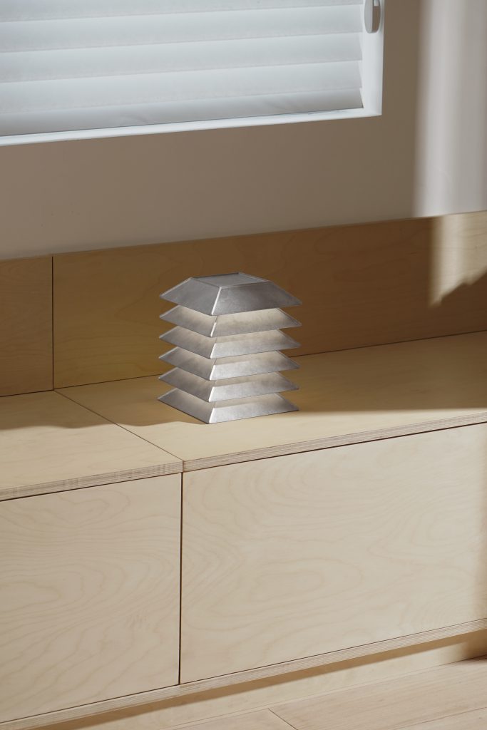 The Pagoda takes its cues from the simplicity of Han and Tang dynasty architecture, where straight eaves and refined lines were used rather than the ornate curvature that emerged in later periods. As Chinese history evolved, pagodas became increasingly elaborate, but in doing so they lost some of their original, understated beauty. The studio attempted to revive this form into the product; combining industrial precision with classical form, the Pagoda embodies a new expression of Chinese aesthetics. Its modular structure, both functional and symbolic, allows endless configurations and applications. It’s also the studio’s first lightweight, movable lighting product, designed to minimise material waste and labour costs without compromising elegance. A thoughtful detail lies in the cable outlet at the base, which mirrors the doorway of a traditional pagoda. When illuminated, light cascades gently from one tier to the next, refracting softly to create an atmospheric, glare-free glow. The simplified eaves, pulled upwards on each side, enhance both the structural integrity and the sculptural presence of the lamp.