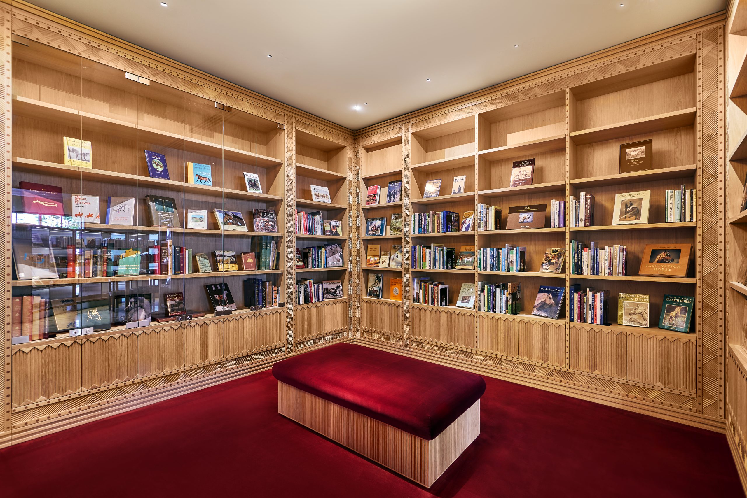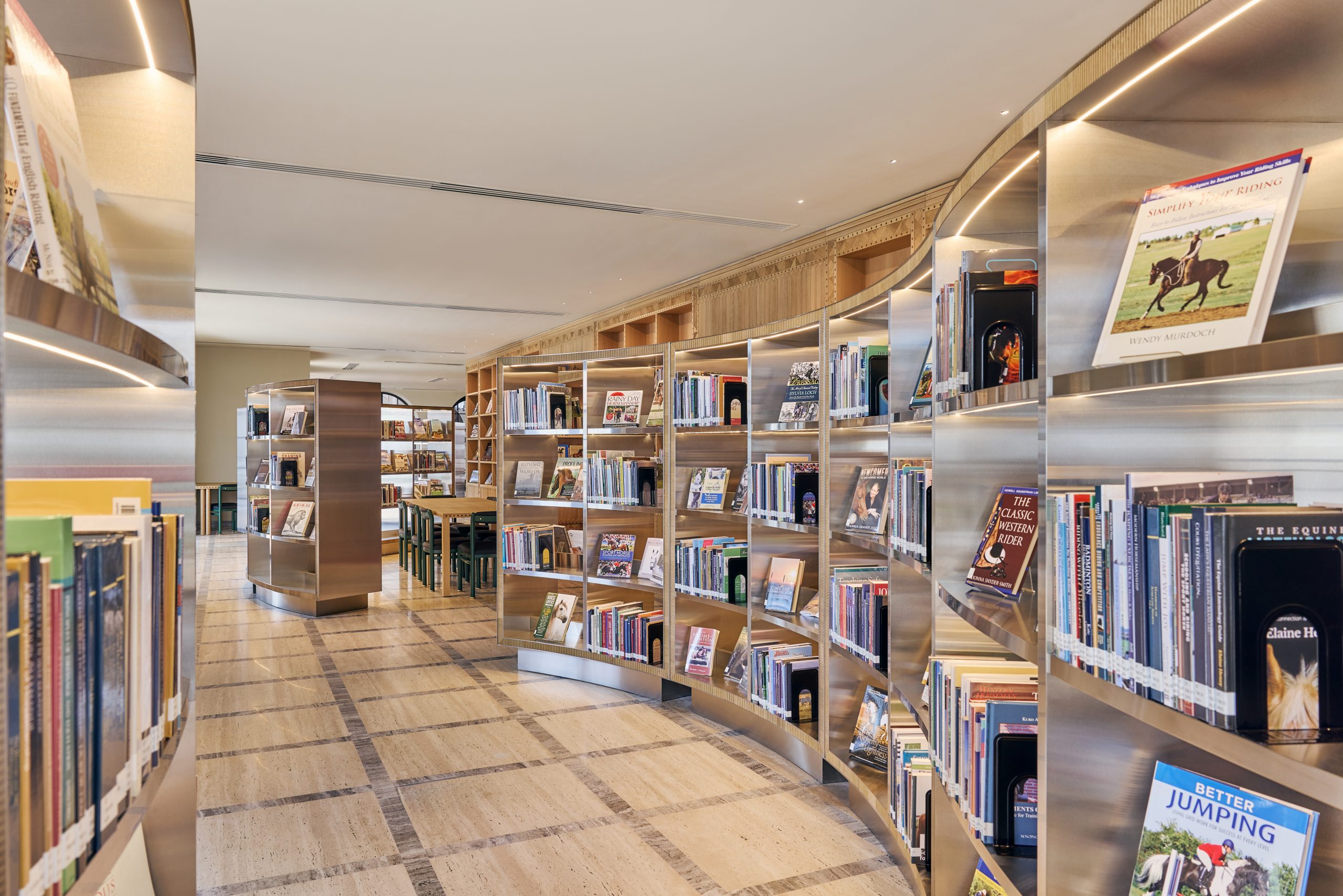 We were inspired by the continuous motion of a horse. There is a fluidity in the way the bookshelves curve and the way the space guides you through different narratives. We also brought in materials that echo the world of the stables such as wood, metal & leather.
