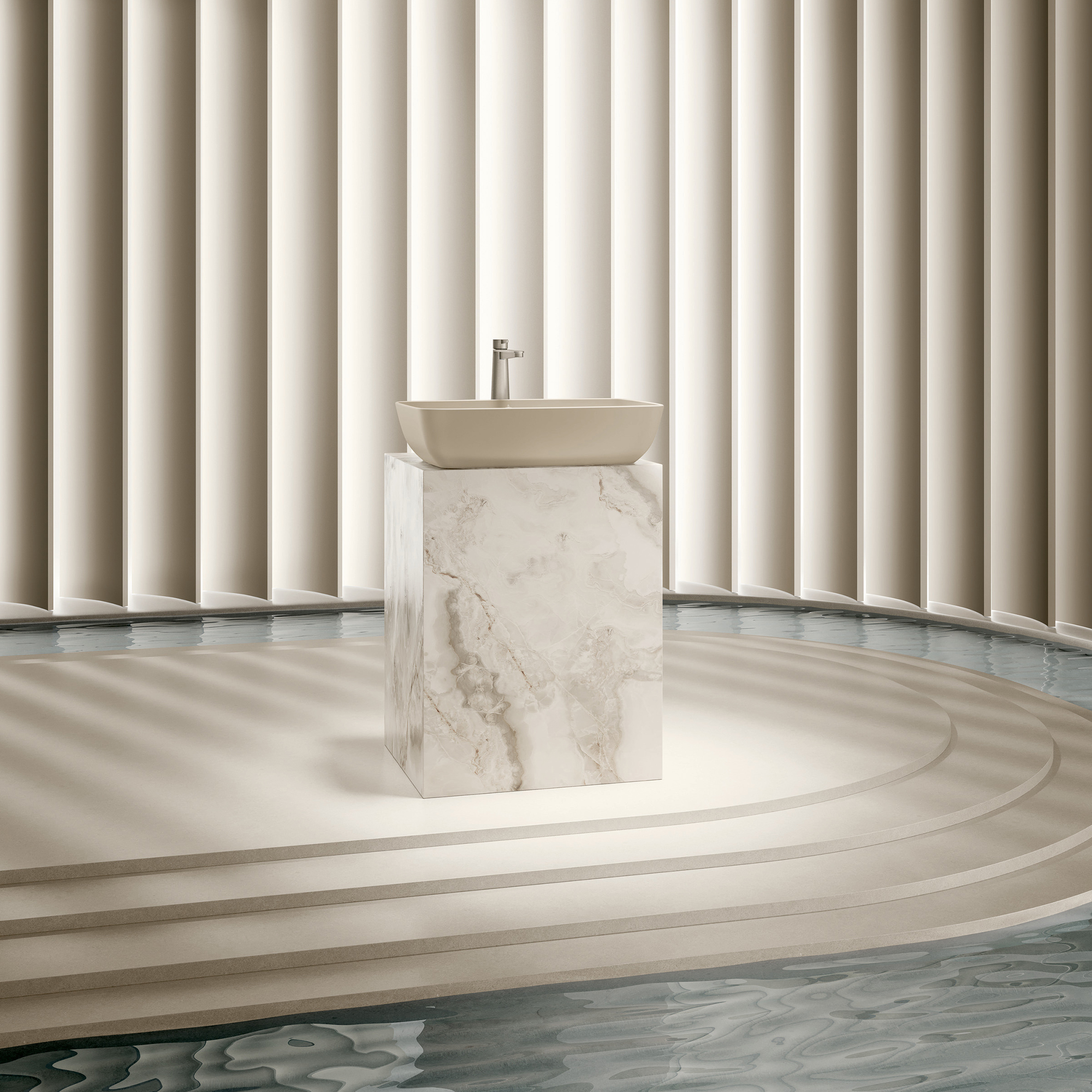 With four new full-surface matt shades – Pure Black, Almond, Nightfall and TealArtis reflects the trend towards powerful mid-tones while adding its own very individual note. For the first time the selection also includes single-coloured surface-mounted washbasins that bring even greater intensity and calm into the bathroom. Like all other pieces, they are made from high-quality TitanCeram and impress with their exceptional stability. All Artis surface-mounted washbasins are available in the four shapes of round, oval, square and rectangular, and can be combined with furniture from collections, including Finion and Antao. Artis Guest offers a smaller-sized version in round and oval shapes – perfect for sensational guest bathrooms. “They create a sense of security,” explains designer Gesa Hansen.