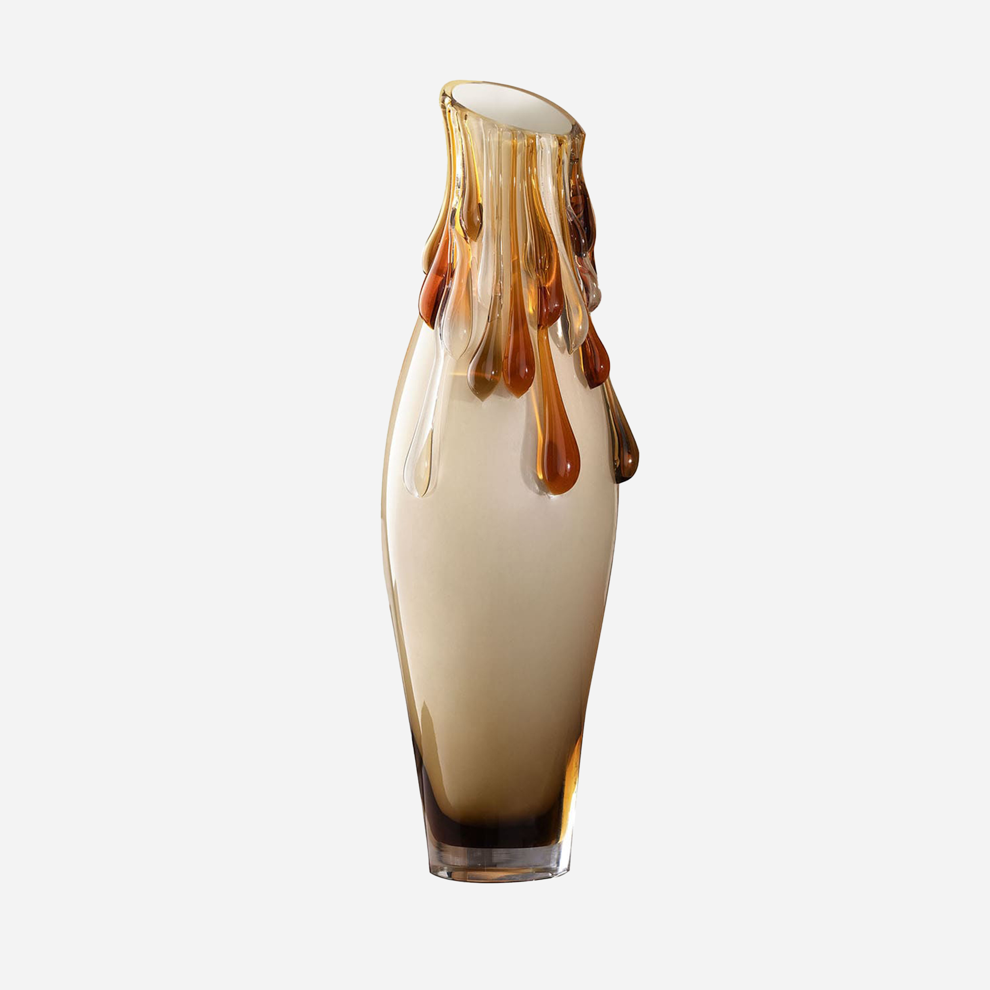 Ingrained in mouth-blown opaline Murano glass and presented in drip-like shapes, creating a sense of interest and intrigue.