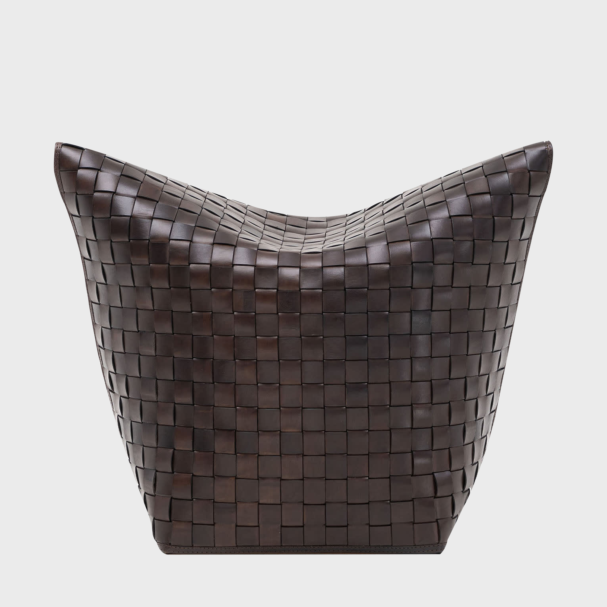 Chic and intricate, this pouf draws inspiration from the iconic cross-stitch patterns seen in luxury fashion, crafted from natural leather and handwoven with care. Designed by Viola Tonucci, it received an honourable mention at the 2011 Young & Design contest in Milan, Italy. The leather is folded with precision, echoing the art of Origami.