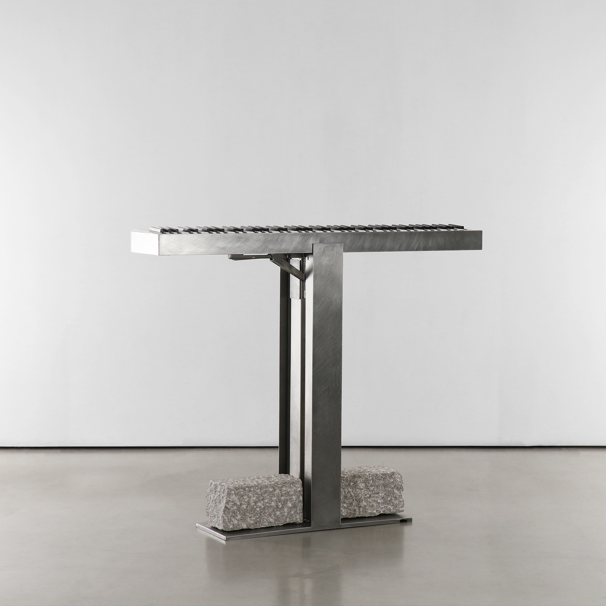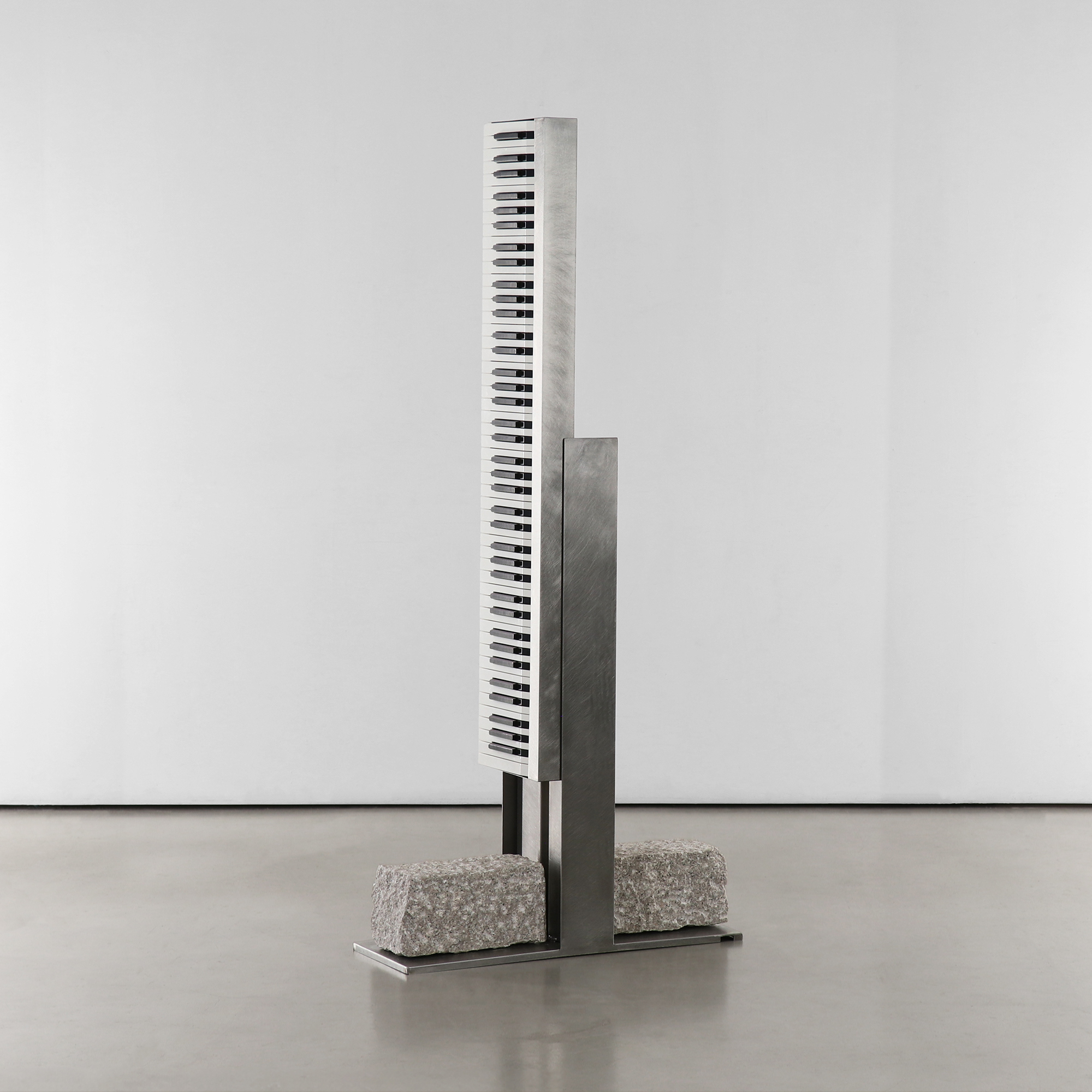 Playful and fully functional, the Steel and Stone Piano V2 is an articulated, sculptural electronic piano created in a collaboration between Batten and Kamp and digital artist Henry Chu. Fabricated from stainless steel and anchored by found stone, the piano extends Batten and Kamp’s renowned Steel and Stone series into the realm of music. Its striking looks make it a collectible design piece.