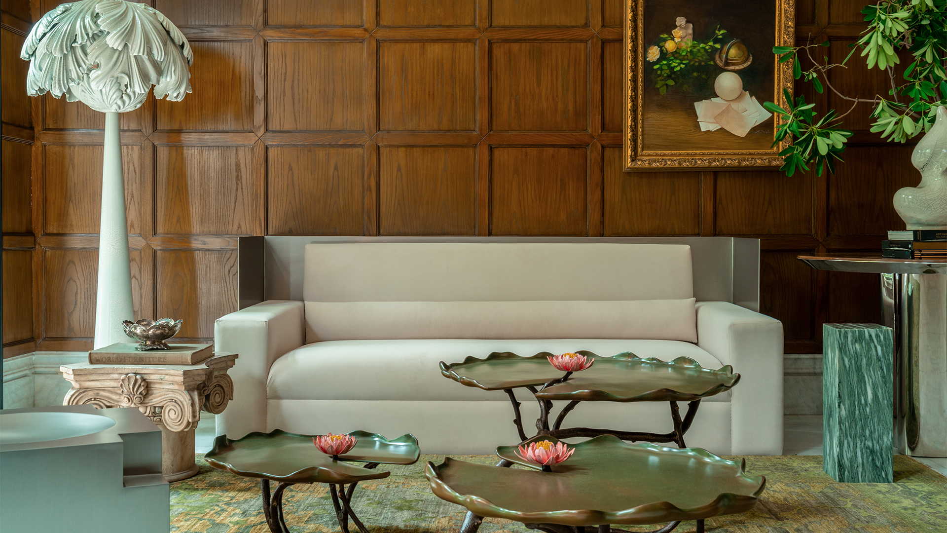 This apartment designed by Carl Gerges features green hues throughout