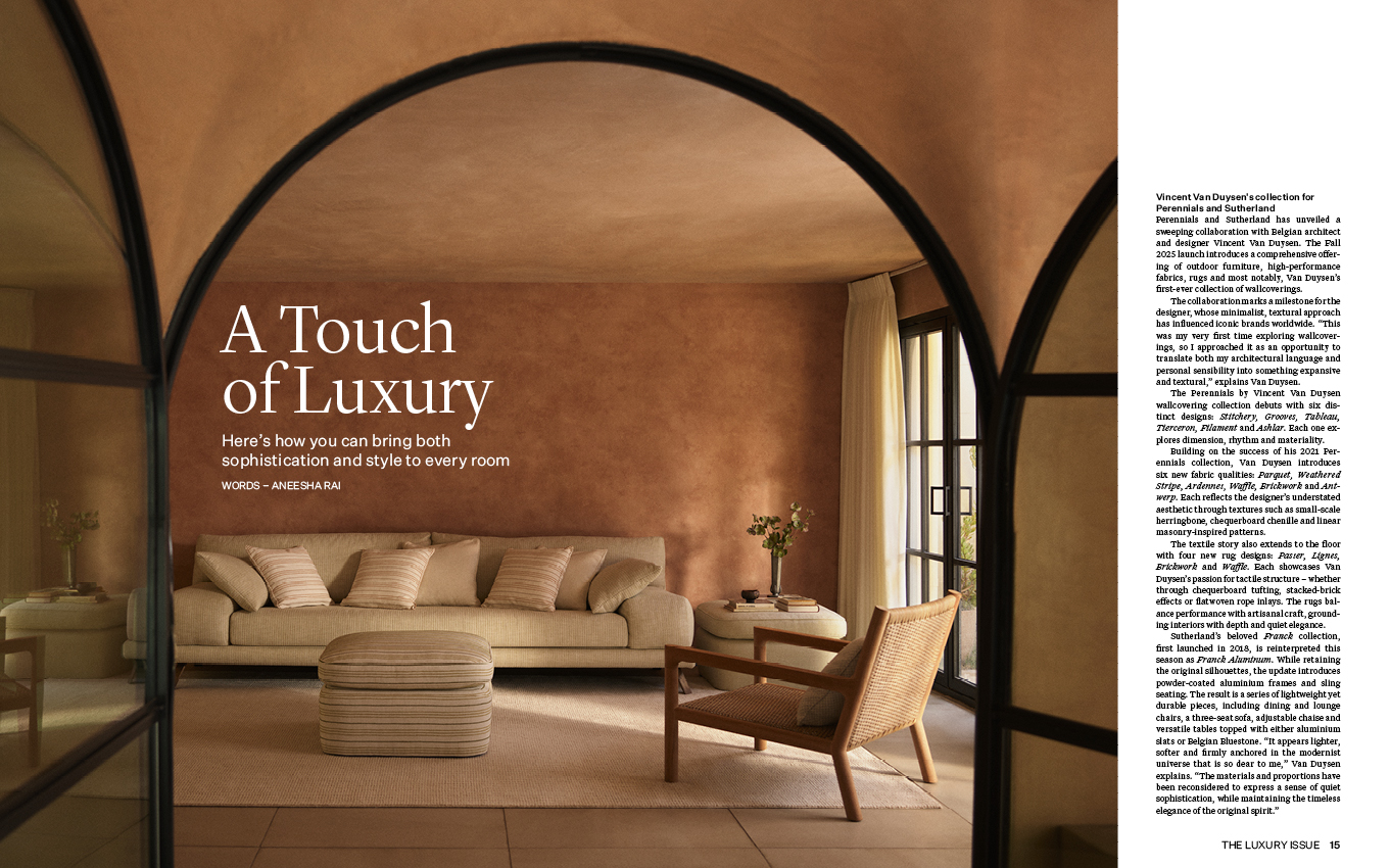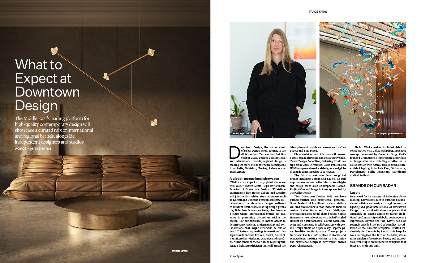 In this issue, we also journey through homes in Dubai and beyond, where we examine the many interpretations of luxury in residential design. Our Design Focus highlights the small yet impactful details that infuse personality into your living spaces. As Downtown Design approaches, we bring you an exclusive preview of what promises to be its most exciting edition yet.