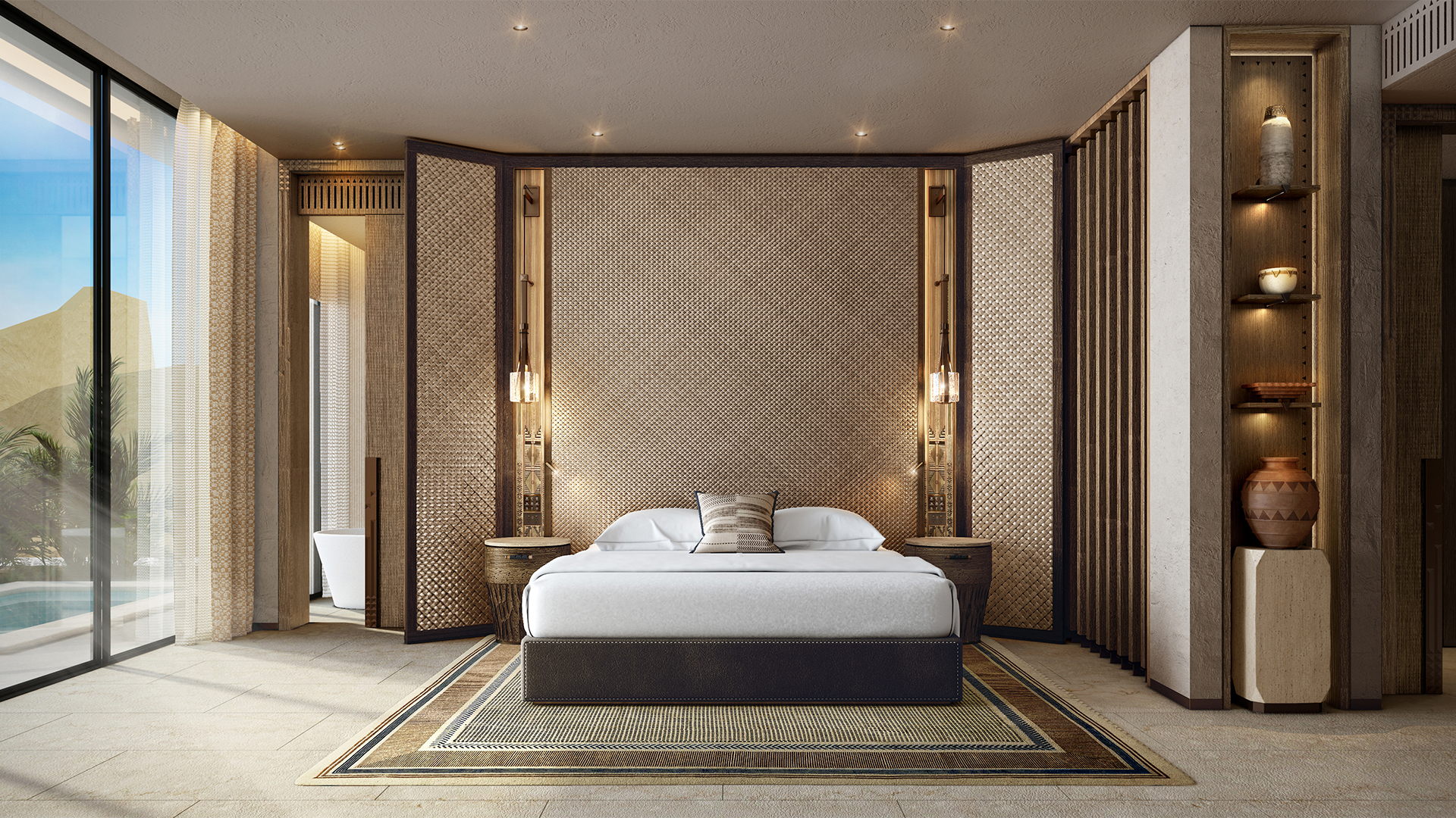 The Chedi Wadi Safar is designed as a tranquil sanctuary where guests can experience a seamless blend of modern elegance and traditional craftsmanship. The collaboration between KCA International and BIG, with the support of the Diriyah Gate Development Authority (DGDA) brings a unique vision to life. The interiors are inspired by the natural beauty surrounding the site, with an emphasis on organic textures, earthy tones and the use of local materials like stone, clay and handcrafted wood.