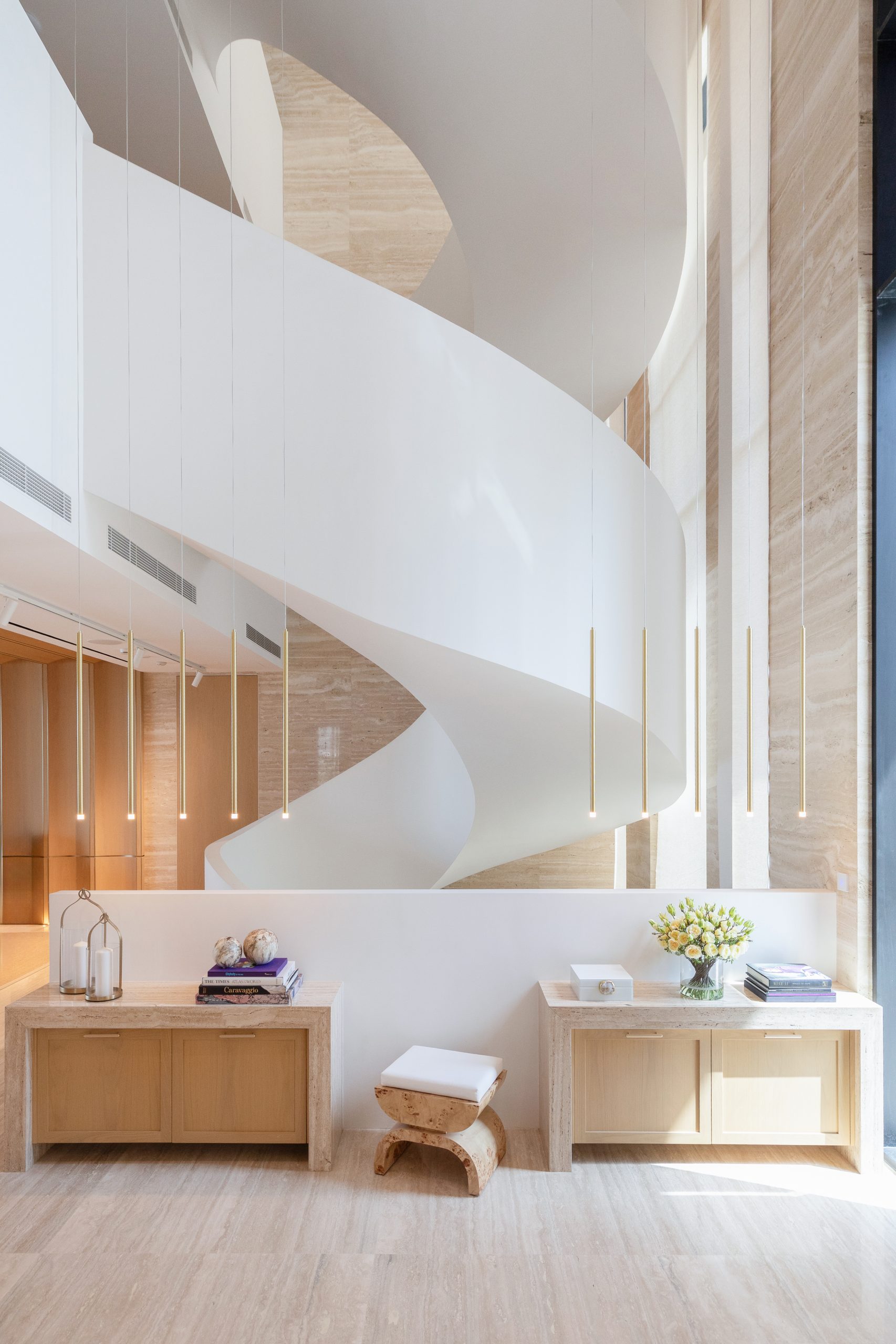 “From day one, I worked hand in hand with the architect to ensure that every spatial decision balanced beauty with everyday life,” Das shares. “Slab heights were planned to allow seamless ceiling finishes; window placements were aligned with interior sightlines and the horizon beyond. At the centre of the home, a sculptural three-level staircase became not only a striking design gesture but also the anchor connecting each floor in quiet rhythm.”